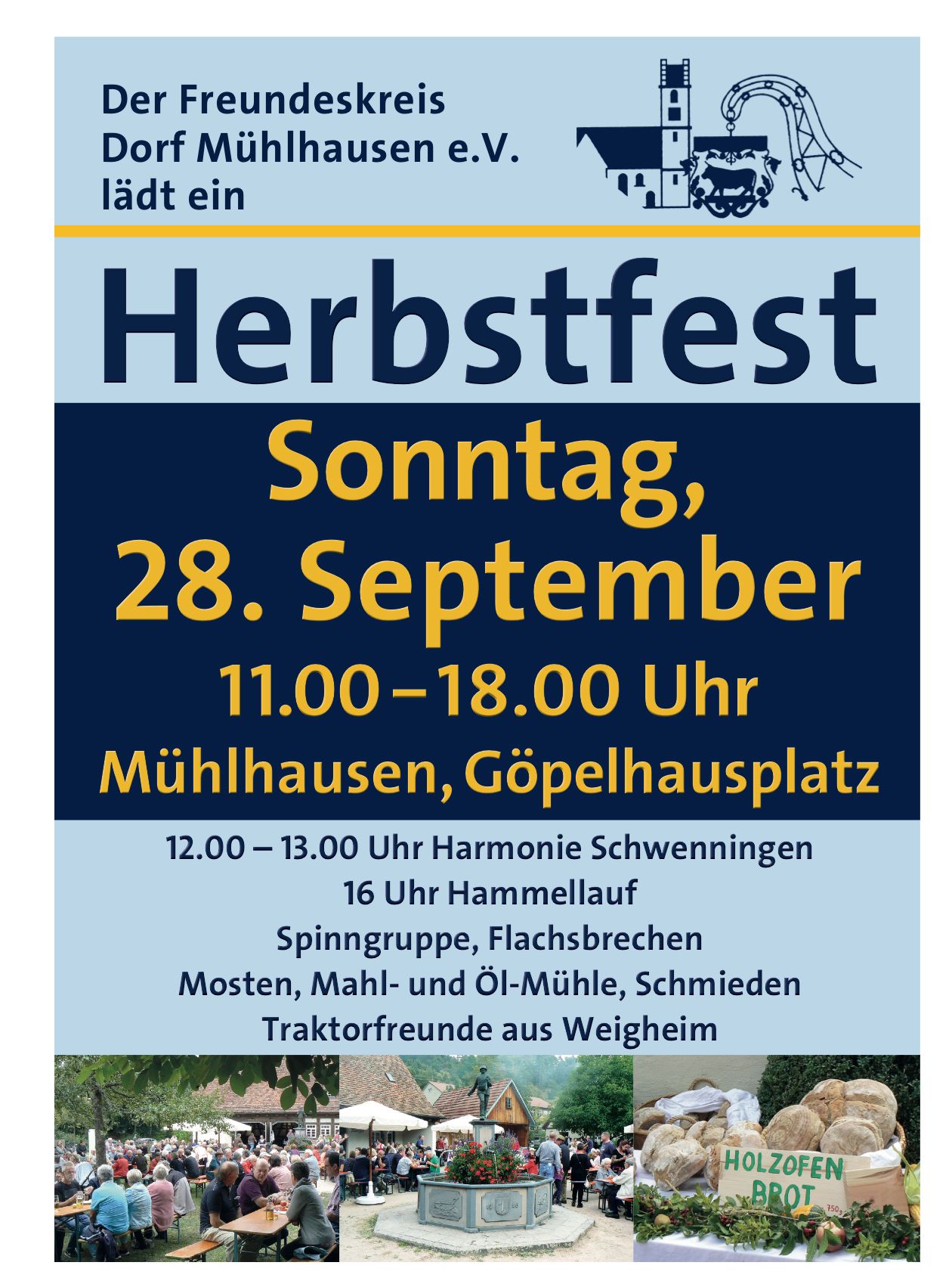 Der Freundeskreis Mühlhausen e.V. lädt Sie herzlich zum traditionellen Herbstfest ein.